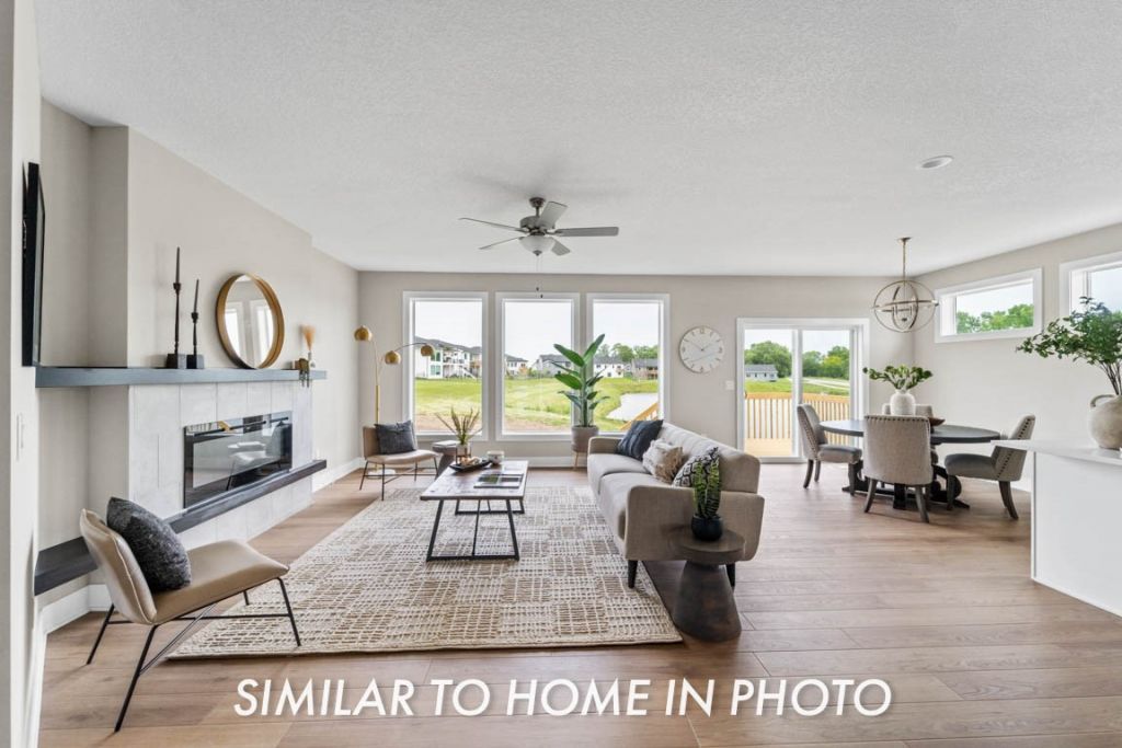 Destiny Homes presents their Redwood Plan in Urbandale's Biltmore West development. This home offers stunning curb appeal with a welcoming double-door entry. Inside, large windows fill the home with natural light and highlight the 9-foot ceilings throughout. The spacious open-concept living and dining area flows into a well-appointed kitchen featuring painted cabinets, a hood vent, wall oven, quartz countertops, extended island, stylish backsplash, and sliding barn doors leading to the pantry.