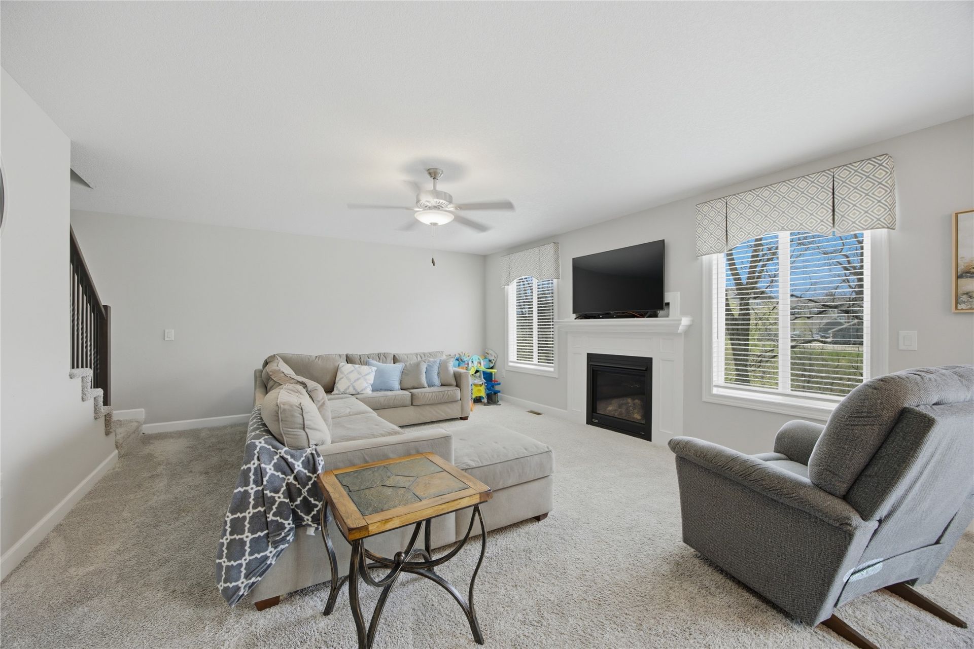 This 5 bed, 4 bath home is a perfect blend of comfort and convenience nestled in a peaceful neighborhood just minutes away from Ewing Park and Easter Lake. From the moment you walk in the open concept main level you'll feel right at home. The spacious kitchen with quartz countertops and abundant cabinets flows right into the sunlit dining and living areas, complete with a cozy fireplace. There's also a 1/2 bath tucked away on the main level. Upstairs retreat to the huge primary suite, featuring double sinks, a large walk in closet and plenty of room to unwind. Second floor laundry, another full bath and three bedrooms round out the floor. The finished walk out lower level offers another sun drenched family room, 3/4 bath, 5th bedroom, and a storage room. Enjoy Iowa's beautiful seasons from your large walkout deck overlooking a serene backdrop of mature trees. This home offers effortless living and timeless style and is the perfect place to plant your roots and make lasting memories! All information obtained from seller and public record.